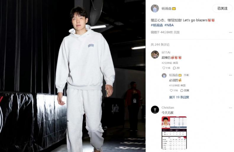 Bây giờ Yang Hansen đã đăng ảnh lên mạng xã hội và viết: "Hãy ngừng suy nghĩ và tiếp tục làm việc chăm chỉ! Hãy diện blazer! (Hãy nhanh lên! Blazers)"
