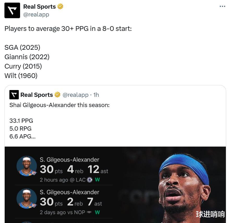Đây cũng là minh chứng cho màn trình diễn ấn tượng của Alexander kể từ đầu mùa giải. Cho đến nay trong mùa giải mới, Alexander đã ghi trung bình 33,1 điểm, 5 rebound, 6,6 kiến tạo, 1 cướp và 1,4 tắc bóng mỗi trận. Anh đã trở thành cầu thủ thứ tư sau Chamberlain (60-61), Curry (15-16) và Antetokounmpo (22-23) dẫn dắt đội bóng của mình giành 8 chiến thắng liên tiếp vào đầu mùa, đồng thời ghi trung bình hơn 30 điểm mỗi trận.